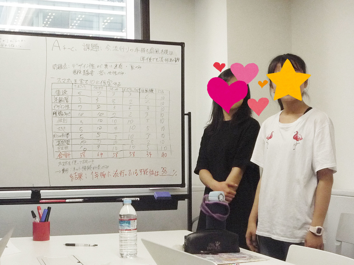 私たちのチームは「今一番流行っている手持ち扇風機は、一年後に流行っているのか?」という課題を取り上げました。